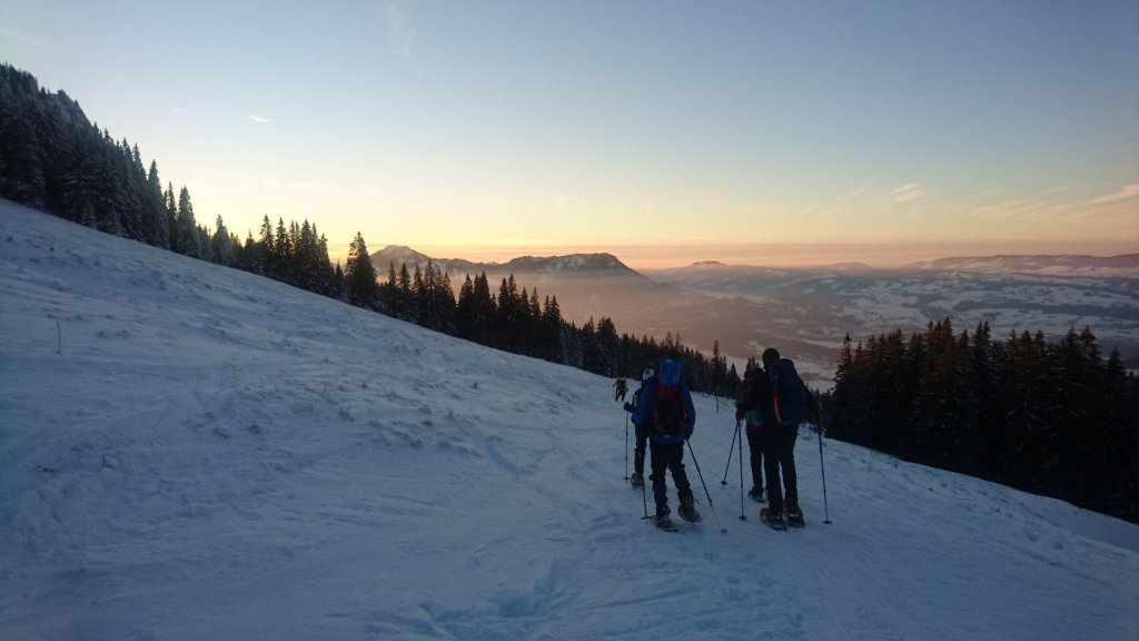 Am Parkplatz in Kranzegg konnte direkt mit Schneeschuhen oder Tourenski gestartet werden. Der erste Wintereinbruch im Allgäu hatte ein bisschen Schnee im Gepäck gehabt. Nicht sonderlich viel, aber trotzdem ging es fröhlich die bekannte Route hinauf zur ersehnten Sonne. Bei ca. -5 Grad im Schatten konnte ein bisschen Wärme echt nicht schaden.