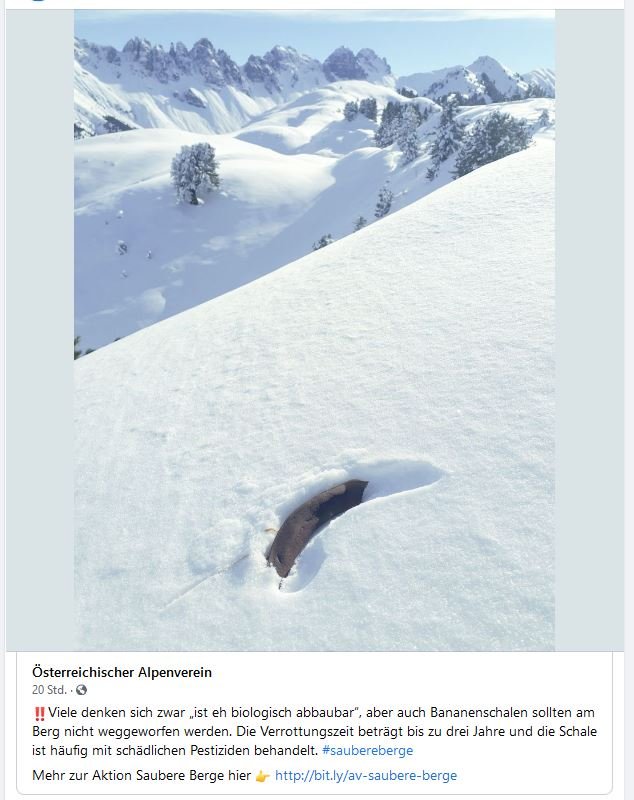 Grundsätzlich denke ich mir, wenn wir alle unsere Speisereste in den Bergen verteilen würden, dann möchte ich mir nicht ausmalen, wie es dort aussähe.
